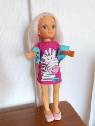 Chollo Muñeca Nancy Perfecto Estado Juguete para niñas a partir de 2-3 años. Está impoluta, como nueva. Va a la moda, con faldita y camiseta de colores estampados de zebra. Longitud de 44 cm.