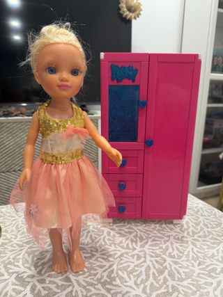 Muñeca Nancy con su armario original. - Armario de color rosa. - Incluye accesorios decorativos.