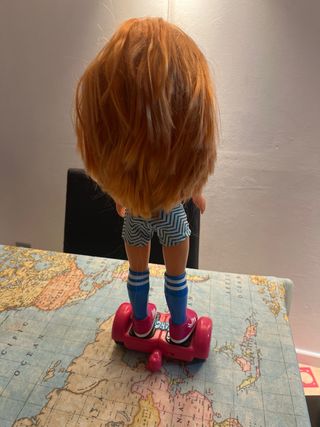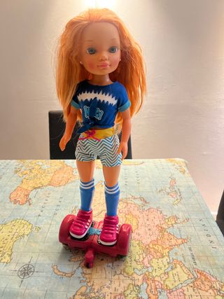 Muñeca Nancy vestida para patinar. - Incluye patinete. - Ropa de muñeca. - Pelo largo y naranja.