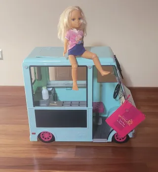Camion de helados para muñecas, Sweet stop Ice cream truck our generación + muñeca Nancy articulada de 🎁 El camión tiene luces direccionales, freno, toca 3 canciones los limpias no van Sin accesorios solo lo que se ve en las fotografías mide aproximadamente de largo unos 64cm slto 52.5 y 31,6 NO ES NEGOCIABLE ❌️