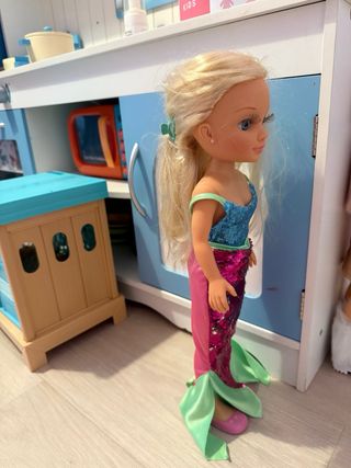 Muñeca Nancy con un precioso vestido de sirena. - Vestido con lentejuelas brillantes. - Falda con cola de sirena. - Colores vibrantes.