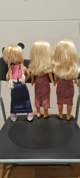 Lote de tres muñecas Nancy. 5 euros cada una. Por 10 euros, te doy las 3. Entrego en Plaza Mayor y alrededores. - Muñeca 1 con orejas de ratón y vestido rosa. - Muñeca 2 con vestido estampado floral rosa. - Muñeca 3 con vestido estampado floral rosa y top asimétrico.