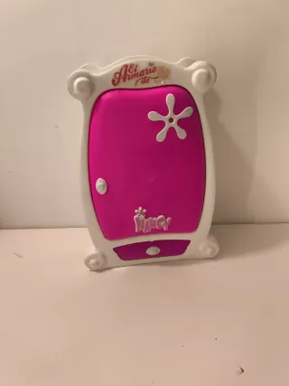 Armario de juguete para muñeca Nancy. - Diseño en color blanco y rosa. - Incluye un cajón. - Decorado con un detalle floral y el nombre 'Nancy'.
