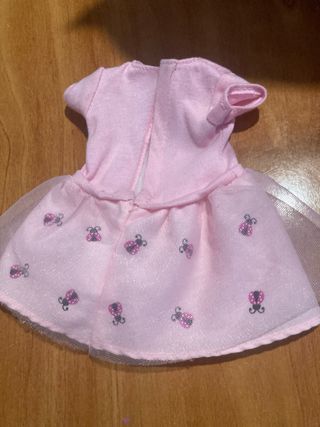 Vestido rosa para muñeca Nancy con diseño de mariquita. - Parte superior de manga corta. - Falda de tul con estampado de mariquitas. - Detalle de nombre 'Nancy' en la cintura.