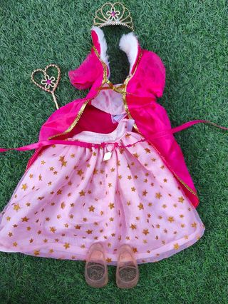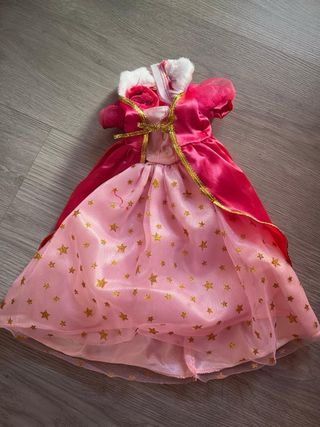 Conjunto de ropa para muñeca Nancy: - Vestido rosa con detalles dorados y estrellas. - Corona dorada a juego.