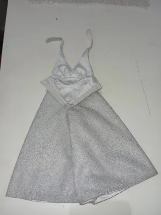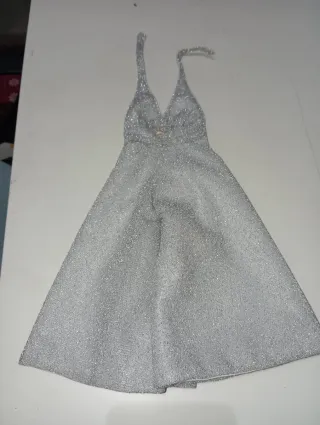Vestido plateado brillante para muñeca Nancy.