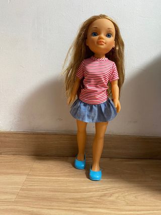 Muñeca Nancy con su patinete, ideal para niñas. La muñeca está en perfecto estado y el patinete luce impecable. - Incluye una muñeca Nancy y un patinete. - La muñeca tiene el pelo rubio y viste ropa moderna. - El patinete es de color turquesa y tiene detalles rosas. - Perfecto para jugar y coleccionar.