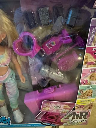 Set de Nancy Air Styler con 5 estilos de peinado. - Incluye muñeca Nancy. - Accesorios para peinar y secador. - Maletín de transporte. La a ri oara ver como era tikect pegado todavia en la caja