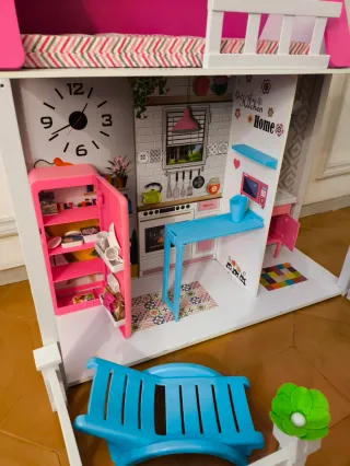 Casa de muñecas Nancy de dos pisos, fabricada en madera. - Estructura de madera. - Dos niveles de juego.