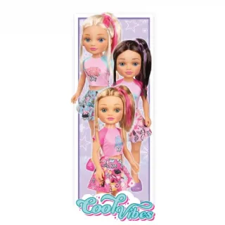 Muñeca Nancy con accesorios. - Muñeca con vestido azul estampado. - Incluye zapatos rosas. - Muñeca con pelo rubio recogido. - Segunda muñeca con pelo rubio y diadema dorada. - Segunda muñeca con camiseta rosa y shorts dorados.