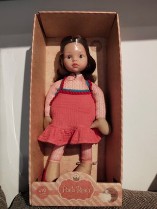 Preciosa muñeca Paola Reina de cuerpo de trapo, ideal para niñas y niños. Está nueva. Piel blanca, pelo castaño y ojos grises. Mi primera amiga.