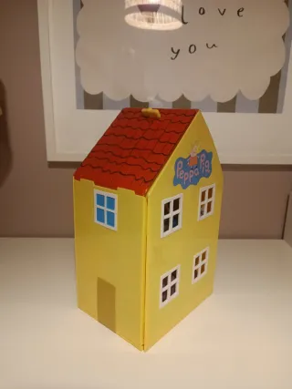 Casa de juguete de Peppa Pig con diseño de casa amarilla. - Con muñecos. - Dos plantas con ventanas. - Logo de Peppa Pig en la parte superior.