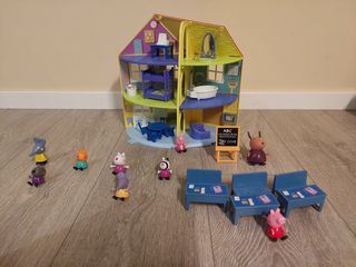 Casa de peppa pig con accesorios y colegio con varios muñecos. Son dos juguetes distintos