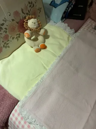 Vendo este lote de recién nacida compuesto por , Colcha de cuna 60 x 1,20 en piqué rosa , con ribete bordado como nueva de Zara Home , Arrullo de recién nacida Tommy Hilfiger en algodón como nuevo, y capa de baño de boutique, como nueva,en piqué amarillo pálido y toalla de rizo por dentro, regalo sabanita bordada blanca y rosa para medida de capazo o cochecito y muñeco de Chicco de león suave para bebe . Entrega en mano o envío por wallapop,se entrega todo limpio