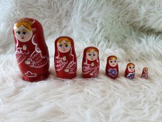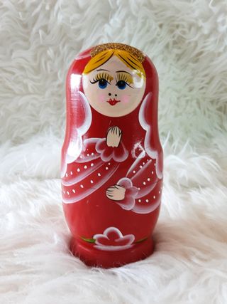 - Muy buen estado general - Muñeca rusa Matrioska realizada en madera y pintada a mano en tonos rojos con detalles dorados. Presenta una hermosa expresión facial y bonitos detalles. Está compuesta por 6 muñecas de diferentes tamaños y diseños - Medidas disponibles en las fotos. Altura de la madre 16 cm aprox - Mucho más en mi perfil, buscar ELENAV juguetes montessori natural