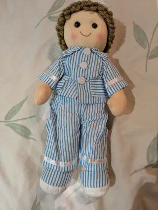 Muñeco de trapo original de la mítica tienda Imaginarium. Es el hermano de Amanda y un clásico absoluto de los años 2000. El muñeco está en muy buen estado de conservación, algo difícil de encontrar hoy en día: Pelo de lana naranja: Perfecto, sin enredos ni trasquilones. Ropa original: Incluye su camisa roja de flores y pantalones azules (están limpios y sin roturas). Cara bordada: Rasgos minimalistas típicos de la marca, sin manchas. Tacto suave: Ideal tanto para coleccionistas nostálgicos como para niños pequeños. Un juguete descatalogado que ya no se encuentra en tiendas. ¡Perfecto para completar tu colección.