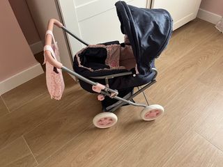 Cochecito de muñecas con un diseño encantador, perfecto para jugar. - Estructura principal en color azul marino. - Detalles y capota en rosa. - Incluye bolso a juego.