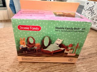 Set de dormitorio para casa de Sylvanian Families. - Incluye muebles: cama, colcha, espejo, tocador y silla, mesita de noche con lámpara y perchero. -No incluye muñecos. *NUEVO, SIN ESTRENAR*