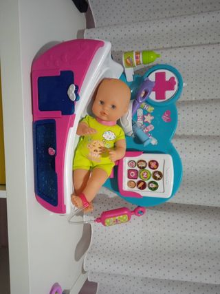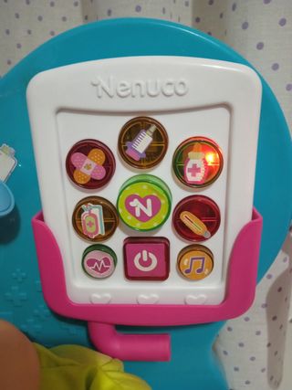 Juego de Nenuco doctora por qué llora? Incluye la camilla y los accesorios, además de 2 nenucos. Está prácticamente nuevo, la tablet funciona y a los muñecos les falta pila. Mi experiencia es que es un juguete que les entretiene bastante e infunde buenos valores.