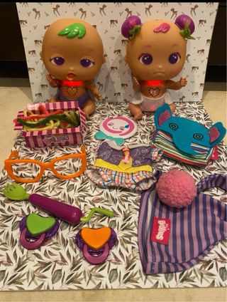 Pack de dos muñecas The Bellies, sleepy guzzz y no ni no , en perfecto funcionamiento - Incluye ropa y complementos. - Muñecas con detalles característicos de la marca famosa - Ideal para coleccionar o regalar.