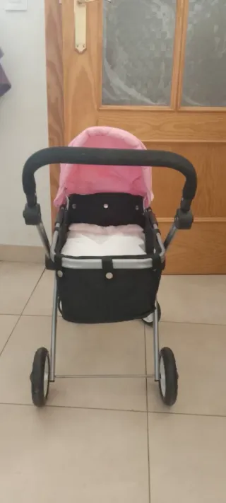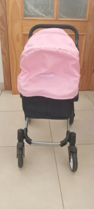 Cochecito para muñecas Nenuco, ideal para jugar. - Color rosa y negro. - Estructura metálica.