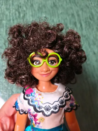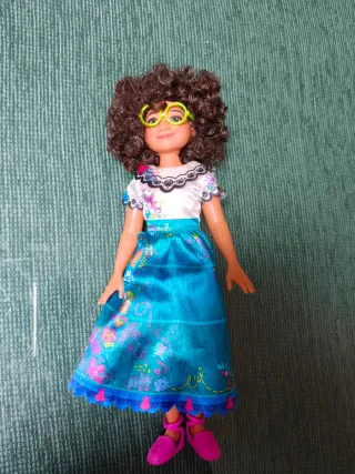 Muñeca de Mirabel de la película Encanto. - Vestido azul con detalles florales. - Zapatos rosas. - Pelo rizado y gafas verdes. En perfecto estado, apenas a jugado con ella. Marca Disney