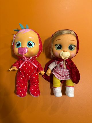 Dos muñecas Bebés Llorones a pilas grandes 20€/ cada muñeca - Una muñeca con traje de fresa. - Otra muñeca con capa roja y vestido de cuadros.