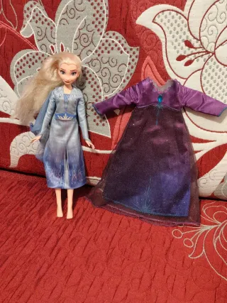 Muñeca de Frozen en buen estado, viene con un vestido adicional. Articulada - Vestido azul con detalles plateados. - Vestido morado con detalles brillantes. Acepto el pago por wallapop, bizum, paypal y transferencia bancaria.