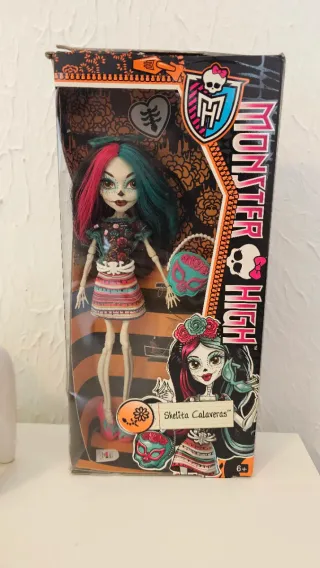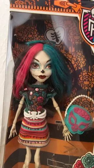 Monster High – Skelita Calaveras G1 lanzamiento original en revista Muñeca Skelita Calaveras de la línea Monster High, personaje inspirado en el Día de los Muertos mexicano. Corresponde al lanzamiento original de Mattel de 2014, actualmente descatalogada, lo que la convierte en una pieza muy buscada por coleccionistas. 🔹 Estado: Nueva, sin abrir (en su caja original) 🔹 Año: 2014 🔹 Marca: Mattel 🔹 Colección: Monster High – Skelita Calaveras 🔹 Incluye: Muñeca original con maquillaje característico Vestido y zapatos originales Accesorio (bolso/máscara temática) Caja original ilustrada Peana ⚠️ Nota: La caja puede presentar