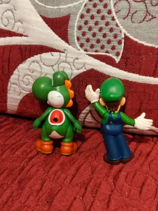 Figuras de los personajes Yoshi y Luigi de la saga Mario Bros. - Figura de Yoshi verde con detalles blancos y naranjas. - Figura de Luigi con su característico traje azul y verde. Acepto el pago por wallapop, bizum, paypal y transferencia bancaria.