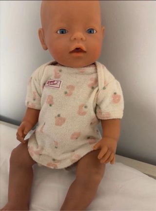 Muñeco de bebé marca Baby Born. - Ropa de bebé de color blanco con detalles rosas. - Diseño de cuerpo blando.