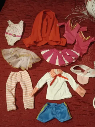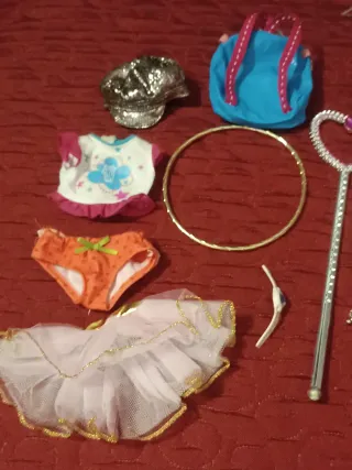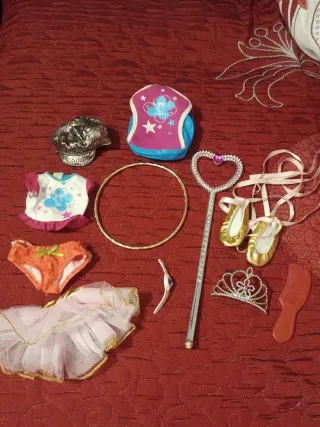 Lote de ropa y accesorios para muñeca Nancy en muy buen estado. - Incluye vestido, braguita, tutú, gorro, mochila, varita, reloj, aro, zapatos de ballet, peine y corona. - Colores variados y diseños divertidos. Acepto el pago por wallapop, bizum, paypal y transferencia bancaria.