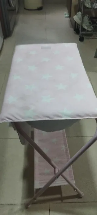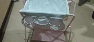 Cuna cambiador para muñecas, ideal para jugar. - Estructura metálica rosa. - Incluye cambiador blanco acolchado. - Bolsillos laterales para accesorios.