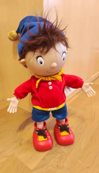Muñeco del personaje de dibujos animados Noddy. Se encuentra en perfecto estado. - Ropa de color rojo y azul. - Gorro azul con pompón amarillo. - Pañuelo amarillo al cuello. - Zapatos rojos.