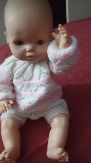 Muñeco Nenuco con un conjunto de punto blanco y rosa.Ideal para coleccionista - Conjunto de dos piezas: jersey y pantalón corto. - Tejido de punto suave. - Detalles de color rosa en el diseño.