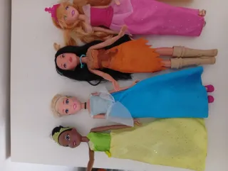 Conjunto de 7 muñecas de princesas Disney, perfectas para coleccionar o jugar. - Incluye personajes como Ariel, Elsa, Anna y Bella. - Variedad de vestidos y accesorios. - Ideal para fans de Disney.