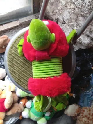 Este simpático muñeco de peluche tiene un diseño divertido y colorido. - Cuerpo principal de peluche rojo. - Nariz y pies de peluche verde. - Detalles de cuello acanalado. Cuerpo espiral que se estira Largo normal 40 , estirados unos 100 No acepto regateos