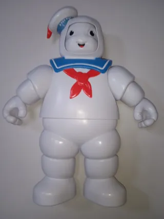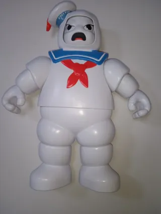 Figura del personaje Stay Puft de Cazafantasmas. - Diseño blanco. - Gorro azul y blanco con inscripción. - Pañuelo rojo al cuello. - Cuello azul. Muy poco usado. Se cambia la expresión de la cara pulsando en la cabeza.