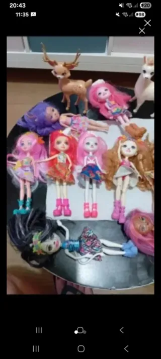 Lote de muñecas Enchantimals. - Variedad de muñecas con diferentes estilos y colores de pelo. - Incluye accesorios como zapatos y vestidos. - Ideal para coleccionistas y juego infantil.