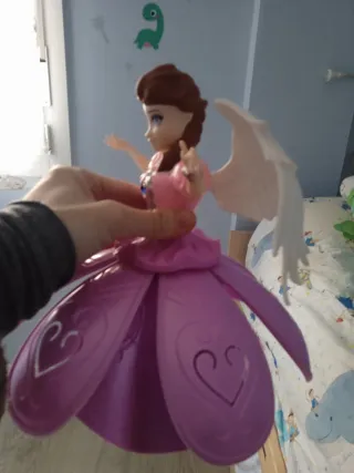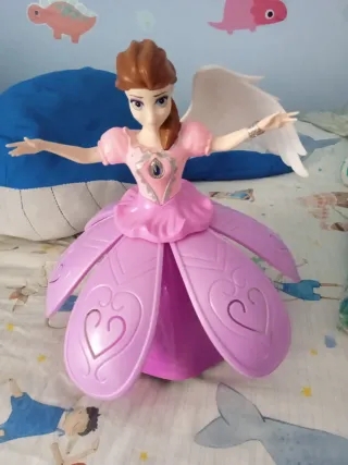 Esta muñeca bailarina tiene un diseño encantador con alas y un vestido rosa. - Se mueve y canta. - Vestido rosa con detalles. - Alas blancas. Le falta un ala