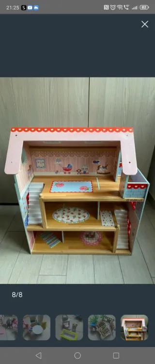 Casita de muñecas con varios niveles y un diseño encantador. - Incluye figuras de familia. - Dispone de mobiliario variado para amueblar las estancias. - Balcón con barandilla. - Tejado a dos aguas.