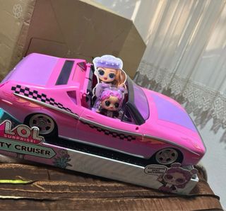 Divertido coche City Cruiser de LOL Surprise con dos muñecas incluidas. Perfecto para coleccionistas y amantes de las muñecas. - Coche de color rosa y morado. - Incluye dos muñecas LOL Surprise. - Diseño deportivo con detalles de carreras. - Muñeca exclusiva incluida.