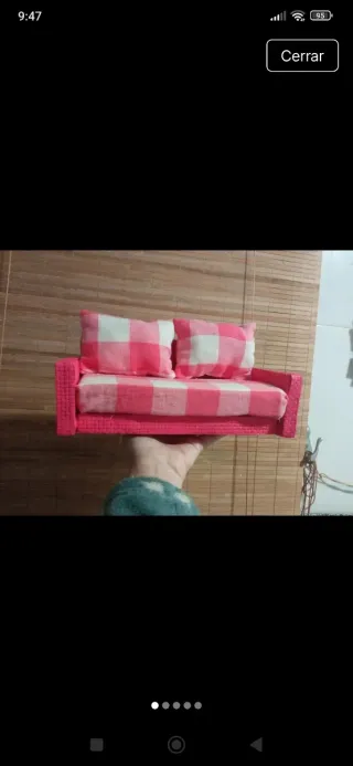 Sofá rosa a cuadros para muñecas