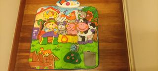 Manta musical bebe medidas 77x77cm. Se vende con pilas y en perfecto funcionamiento, 3 volúmenes, cada personaje hace su sonido independiente. el grajero tiene varias melodías, el ratón es un muñeco de textura con cascabel así como el caracol.