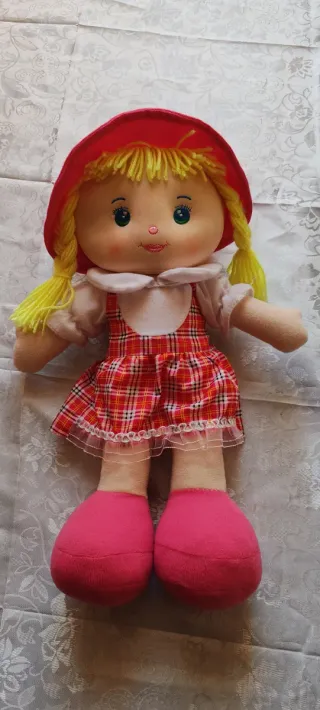 Muñeca de peluche con vestido a cuadros