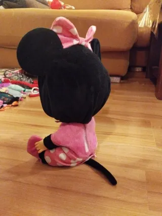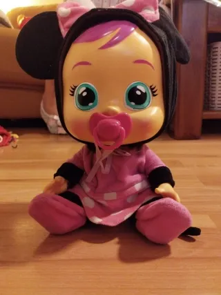 Muñeca bebé llorón con un adorable diseño. - Incluye chupete rosa. - Vestido rosa con lunares blancos y detalles negros. - Orejas de Minnie Mouse.