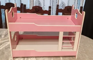 Cuna de muñecas rosa y blanca