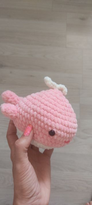 Ballena de crochet, hecha a mano en diferentes colores y tejido tacto peluche. Ojos de seguridad y todas las uniones están tejidas. Ideal tanto para niños pequeños como para mayores. Relleno blandito e hipoalergénico. Se pueden realizar por encargo y personalizar colores.