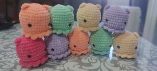 Pulpo pequeño de crochet, hecho a mano en diferentes colores y tejido tacto peluche. Ojos de seguridad y todas las uniones están tejidas. Ideal tanto para niños pequeños como para mayores. Relleno blandito e hipoalergénico. Se pueden realizar por encargo y personalizar colores.