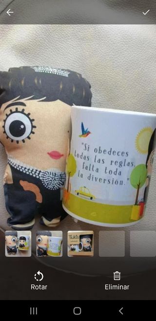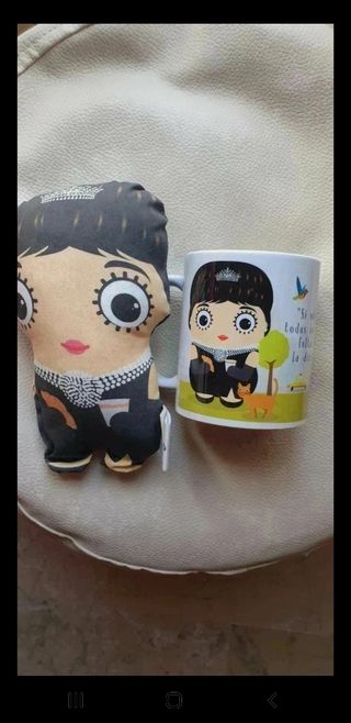 Con frase original autentica y una muñeca de trapo con relleno .Taza y muñeco tukis de Kalidoscopio